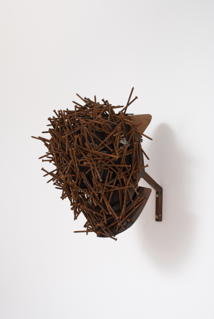 Capacete customizado com metal, ímãs de neodímio e pregos enferrujados.
