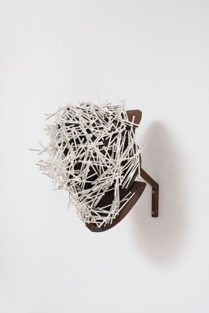 Capacete customizado com metal, ímãs de neodímio e pregos banhados a prata.